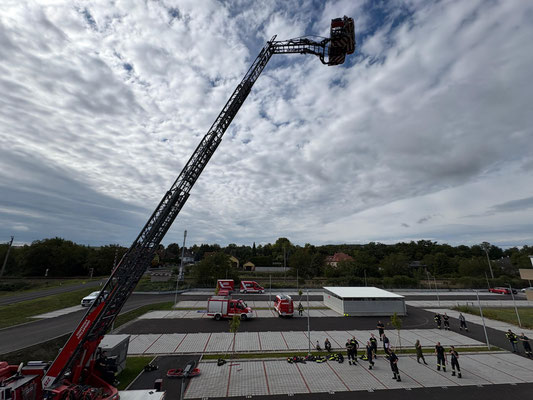 Anschluss erklärten zwei Mitglieder der FF Hollabrunn die Drehleiter und demonstrierten, wie Personen damit sicher transportiert werden können.